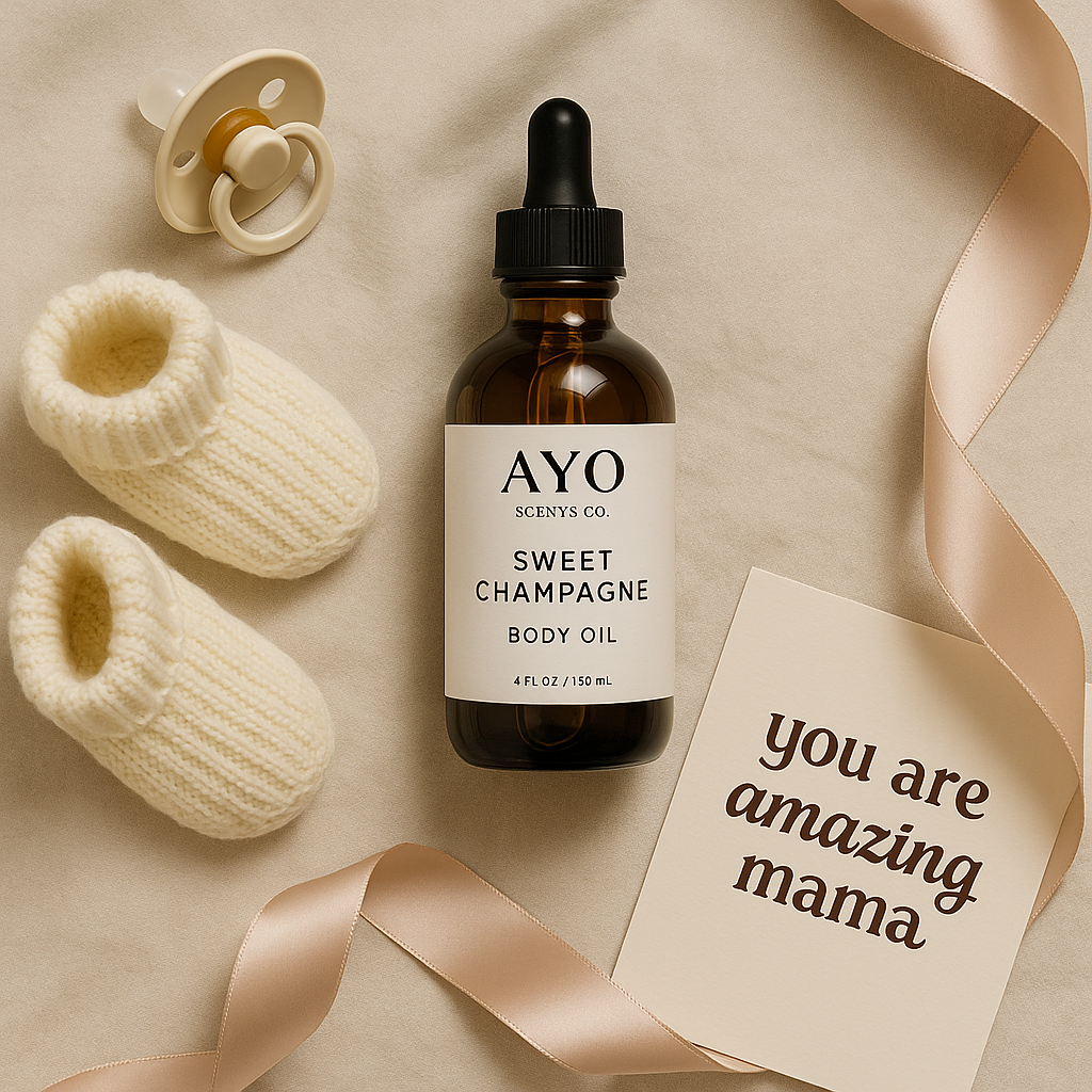 Champagne-scented body butter + oil for the bougie mom who deserves brunch-worthy self-care.